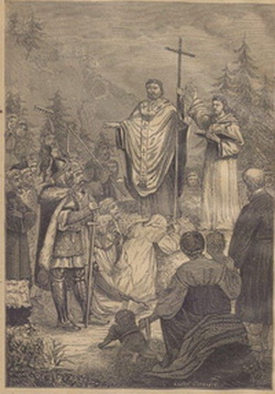 ¦wieci Cyryl i Metody, aposto³owie S³owian https://pl.wikipedia.org/wiki/Cyryl_i_Metody Dzisiejszej nocy pos³uchamy o ¿yciu dwóch ¶wiêtych braci Cyryla i Metodego, których w naszej Litanii Pielgrzymstwa Narodu polskiego nazywamy aposto³ami S³owian. ¦wiêty Cyryl, a w³a¶ciwie Konstantyn, urodzi³ siê oko³o roku 827 w Tesalonikach (miasto znane nam z listu ¶wiêtego Paw³a do Tesaloniczan), a ¶wiêty Metody, który podczas chrztu otrzyma³ imiê Micha³, urodzi³ siê wcze¶niej, bo oko³o roku 815. Nazywani s± Braæmi So³uñskimi od miasta So³unia, bo tak ze s³owiañska brzmia³a nazwa Tesalonik. (Nazywano ich równie¿ braæmi Salonickimi). Byli prawdopodobnie Grekami, choæ s± i takie przypuszczenia, ¿e po matce byli S³owianami. Wiemy na pewno, ¿e So³uñ le¿a³ na terenach zamieszkiwanych przez plemiona s³owiañskie, wiêc ju¿ od wczesnych lat mogli poznaæ jedn± z odmian jêzyka staros³owiañskiego. Imiê Cyryl pochodzi od greckiego Kyrillos, a jest utworzone od rzeczownika Kyrios - pan (czêsto u¿ywanego jako okre¶lenie Boga) przy pomocy przyrostka - il - los, s³u¿±cego do tworzenia zdrobnieñ. Po ³acinie brzmi Cyrillus i od tej formy powsta³ nasz Cyryl. W Polsce imiê znane od ¶redniowiecza, ale rzadko u¿ywane. Jest oko³o dwudziestu ¶wiêtych o tym imieniu. Nasz ¶wiêty przyj±³ to imiê dopiero pod koniec ¿ycia, a praktycznie przez ca³e ¿ycie u¿ywa³ imienia Konstantyn, które otrzyma³ na chrzcie ¶wiêtym. Ze wzglêdu na swoj± du¿± wiedzê nazywany by³ równie¿ Filozofem. Ten przydomek pozostawa³ z Cyrylem a¿ do jego ¶mierci. Dopiero w tradycji pó¼niejszej przyjê³o siê jego zakonne imiê Cyryl. Wiêc i my, w naszym tek¶cie, bêdziemy go tu nazywaæ i ¶wiêtym Cyrylem, i Konstantynem, a czasami i Filozofem. Imiê jego brata Metodego równie¿ wywodzi siê z jêzyka greckiego, od s³owa Methodos, które oznacza my¶lenie, plan, metodê czy umiejêtno¶æ. W Polsce imiê to wystêpuje bardzo rzadko. Tylko czterech ¶wiêtych, za to bardzo wybitnych, nosi³o takie imiê. ¦wiêty Metody na chrzcie otrzyma³ imiê Micha³, a swoje zakonne imiê przyj±³ oko³o roku 840, gdy w Bitynii [kraina znajduj±ca siê w Azji Mniejszej, w dzisiejszej Turcji, nad morzem Czarnym, stolic± jej by³a staro¿ytna Nikomedia, a nastêpnie Nicea, obecnie Iznik] wst±pi³ do klasztoru[1]. G³ow± rodziny naszych braci by³ droungarios, czyli oficer bizantyjski, o imieniu Leon (Lew). By³ on ojcem siedmiorga dzieci, z których najm³odszym by³ Konstantyn, czyli przysz³y ¶wiêty Cyryl. Poniewa¿ jako niemowlê Konstantyn nie chcia³ byæ karmiony przez karmicielkê, a tylko przez rodzon± matkê, uznano to za znak Opatrzno¶ci Bo¿ej, by „dobra latoro¶l z dobrego pnia nieskalanym mlekiem zosta³a wykarmiona[2]". Maj±c siedem lat, Konstantyn mia³ sen, w którym komendant miasta zwo³a³ wszystkie panny i nakaza³ Konstantynowi wybraæ sobie jedn± z nich za ¿onê. On wiêc wybra³ najpiêkniejsz±, ozdobion± z³otem i per³ami, o imieniu Sofia czyli M±dro¶æ. Rodzice rozumiej±c ten sen w³a¶ciwie, oddali go na naukê, a on sta³ siê najbystrzejszym z uczniów, który budzi³ podziw u wszystkich. W czasie wolnym od nauki lubi³ siê ma³y Konstantyn bawiæ ze swoim soko³em, którego wypuszcza³ na ³owy. Pewnego dnia zerwa³ siê bardzo mocny wiatr, który porwa³ tego soko³a tak daleko, ¿e ju¿ nie umia³ wróciæ do w³a¶ciciela. To spowodowa³o olbrzymi± rozpacz u ch³opca, który przez dwa dni nic nie jad³. Ale po tym czasie zrozumia³, jak niewiele znacz± i jak nietrwa³e s± rzeczy i przywi±zania ziemskie. Na ¶cianie domu narysowa³ znak Krzy¿a i od tego czasu gorliwiej przyst±pi³ do nauki. Postanowi³ uczyæ siê na pamiêæ dzie³ ¶wiêtego Grzegorza z Nazjanzu. A tak± mi³o¶ci± zapa³a³ do tego ¶wiêtego, ¿e napisa³ ku jego czci nastêpuj±c± modlitwê: „O ¶wiêty Grzegorzu, który¶ cz³owiekiem jest pod³ug cia³a, ale Anio³em pod³ug duszy! Anio³em jeste¶ w ludzkiej postaci! Usta twoje jako Seraf[in]a wielbi± Boga, a nauk± prawdziwej wiary o¶wiecaj± ¶wiat. Do ciebie uciekam siê z wiar± i mi³o¶ci±, przyjmij mnie, a b±d¼ mi nauczycielem i ¶wiat³em[3]". Niestety nie wszystko rozumia³ nasz Konstanty ze skomplikowanej dla niego nauki ¶wiêtego Grzegorza i to powodowa³o jego g³êbokie przygnêbienie. Ale modli³ siê ¿arliwie o nauczyciela i ta modlitwa zosta³a wys³uchana. Cz³owiek imieniem Teoktyst, [prawdopodobnie eunuch] który pe³ni³ na cesarskim dworze funkcjê logoteta, czyli ministra, s³ysz±c o zdolno¶ciach i m±dro¶ci Konstantyna, wezwa³ go na dwór cesarski do Carogrodu, czyli do Konstantynopola. (Konstantynopolem zaczêto nazywaæ staro¿ytne Bizancjum, kiedy pierwszy chrze¶cijañski cesarz Konstantyn Wielki do tego miasta przeniós³ z Nikomedii stolicê cesarstwa Wschodniorzymskiego. Od 1930 roku miasto nazwano Stambu³em.) Tu w akademii cesarskiej naszym bohaterem zajê³o siê wielu nauczycieli. Miêdzy innymi trafi³ na Leona zwanego Matematykiem, pó¼niejszego arcybiskupa, który zas³yn±³ walk± ze czci± obrazów [- by³ obrazoburc±], ten uczy³ go geometrii i rozumienia dzie³ Homera. Drug± znan± postaci± by³ Focjusz, uznawany za jednego z najwybitniejszych ówczesnych uczonych i teologów. On naucza³ wszystkich nauk filozoficznych, retoryki, arytmetyki, astronomii, muzyki i innych sztuk helleñskich. Focjusz wszed³ do historii jako ten, który by³ jednym z inicjatorów roz³amu miêdzy ko¶cio³em wschodnim a zachodnim. Nasz Konstanty by³ wy¶mienitym uczniem, wszystkich przedmiotów uczy³ siê tak, jakby ka¿dy z nich by³ dla niego najwa¿niejszy, lecz musia³ siê najbardziej daæ poznaæ ze znajomo¶ci filozofii, gdy¿ wtedy zaczêto go nazywaæ Filozofem. Konstanty uwa¿a³, ¿e filozofia „to poznanie spraw Bo¿ych i ludzkich, aby siê dowiedzieæ, jak by cz³owiek móg³ zbli¿yæ siê do Boga i st±d nauczyæ siê, ¿e jest stw