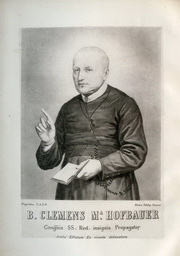 cz. III św. Klemens Dworzak Hofbauer  Zdj. Z ks.: X. Bernarda Łubieńskiego, Apostoł Warszawy czyli żywot błogosł. Klemensa Maryi Hofbauera, Mościska 1889. Po tym dosyć dokładnym opisie działalności duchownej benonitów, możemy powrócić do zarzutów, które już w kilka lat po rozpoczęciu przez nich działalności w Warszawie pojawiały się w stosunku do nich. Na początku posłuchajmy co o benonitach sądził Zachariasz Werner (ur. 1768 w Królewcu - zm. 1823r. w Wiedniu), urzędujący w Warszawie pruski urzędnik kamery wojenno-ekonomicznej, poeta, człowiek zakochany w polskiej kulturze a jednocześnie mason. Napisał on w roku 1805 w liście do doradcy wojskowego rezydującego w Berlinie taką opinię o redemptorystach: „Niech sobie pan wyobrazi, że mamy tu zakon benonitów... Zostali tu sprowadzeni przez jakiś jezuicki podstęp. Prosty lud kocha ich bardziej niż swoich własnych proboszczów. Osiągnęli tę popularność prostymi sposobami: a) są ogromnie pracowici; b) wiedzą do czego zmierzają; c) umieją zyskiwać ludzi, gdyż ich kościół jest codziennie otwarty od 7 rano do 9 wieczór, [jak słyszeliśmy wcześniej, w tym kościele spowiadano już od 5 rano] ciągle się w nim śpiewa, głosi kazania. Ponadto mają pewną ilość bractw męskich i żeńskich, do których należą ludzie z różnych warstw społecznych. Spowiedź jest dla benonitów środkiem szerokiego oddziaływania na masy... To wszystko jest całkowicie zgodne z prawdą. Kościół swój obwiesili przeróżnymi obrazami. Niektóre są wprost obrzydliwe, niemniej jednak działają potężnie na wyobraźnię ludu. Widziałem tam niedawno krucyfiks naturalnej wielkości, rzeźbiony w drzewie. Nie stałem się przez to - dzięki Bogu - katolikiem, ale na pewno jestem bardziej rozumnym człowiekiem. Proszę sobie wyobrazić naturalnej wielkości Żyda, wyprężonego na krzyżu, skatowanego, pokrytego na całym ciele wstrętnymi ranami, naprawdę sromotna karykatura. Panie radco, wyznaję szczerze, iż dałbym wówczas 100 dukatów, a nawet i więcej, gdybym mógł połamać ten krucyfiks na głowie jakiego klechy. Taka figura powinna być natychmiast przez policję usunięta (niestety w Warszawie mamy tylko cień policji, co nie jest wcale przypadkowe), choćby ze względu na ciężarne kobiety. Tymczasem dorośli i dzieci całują, a raczej oblizują tę figurę - naszego Jezusa Chrystusa. Niech Bóg broni, by mi się coś podobnego przydarzyło w Wielki Piątek, kiedy z rozrzewnieniem wspominam cierpienia Zbawiciela"[1]. A jednak, Pan Bóg tak poprowadził jego losy, że nie tylko to mu się to „przydarzyło", ale dużo, dużo więcej, bo kilka lat później, dokładniej w roku 1811, przeszedł na katolicyzm. Natomiast trzy lata później, a więc już w roku 1814 został wyświecony na księdza, który poprzez swoje kazania został jednym z popularniejszych kaznodziejów w Wiedniu, a olbrzymi wpływ na jego rozwój duchowy wywarł święty Klemens, który w tym czasie przebywał również w Wiedniu. Jak słyszeliśmy Zachariasz Werner pisał, że redemptoryści zostali sprowadzeni do Warszawy przez jezuicki podstęp. Napisał tak, gdyż zakon redemptorystów przez wiele osób (a zwłaszcza przez masonów) uważany był za odnogę zakonu jezuitów, który został skasowany przez, uległego wobec Burbonów, papieża Klemensa XIV. Dokładnie w tym samym duchu pisał do Napoleona marszałek Davout, posłuchajmy: „Znajduje się tutaj zgromadzenie religijne znane pod nazwą benonitów czy też Ojców Odkupienia. Są to resztki zakonu jezuitów"[2]. To oczywiste kłamstwo było przez wiele lat powtarzane przez różnorakich autorów, takich jak mason Julian Ursyn Niemcewicz (ur. 1758 - zm.1841), Józef Ignacy Kraszewski (ur. 1812 - zm. 1887) czy też Andrzej Niemojewski (ur. 1864 - zm. 1921). I zdarza się, że jest powtarzane do dziś. A te insynuacje brały się stąd, że w tym czasie, „po zniesieniu Towarzystwa Jezusowego w całej Europie panowała histeria antyjezuicka; wszędzie dopatrywano się ukrywających się członków tego zakonu. Już w czasie pobytu Hofbauera i Hübla w Wiedniu w 1786 r. Marek Antoni Wittola [ur.1736-zm.1797 austriacki teolog i pastor] opublikował na łamach „Wienerische Kirchenzeitung" artykuł, w którym pisał o redemptorystach, iż są oni eks-jezuitami przybyłymi z Rzymu. Policja austriacka dopatrywała się podobieństwa do jezuitów nawet w ich stroju zakonnym"[3]. Kampania nienawiści i oszczerstw w stosunku do benonitów zaczęła się, co istotne, jeszcze w czasie, gdy Warszawa była pod zaborem pruskim, pomimo tego jednym z późniejszych oszczerstw pod ich adresem była domniemana współpraca z rządem pruskim. O tym jeszcze wspomnimy, troszkę później. Tymczasem już wtedy, warszawscy „redemptoryści spotkali się (...) z nienawiścią ze strony masonerii warszawskiej [mającej swoje loże - matki przede wszystkim w Berlinie], która patrzyła z niepokojem na ich działalność duszpasterską i walkę z zalewem niemoralności. (...) W loży warszawskiej wiedziano już dużo wcześniej o przygotowaniach do kasaty klasztoru. Jeden z masonów na kilka tygodni przed wydaniem edyktu banicyjnego wyznał w tajemnicy Hofbauerowi że klasztor zostanie zamknięty, gdyż redemptoryści wywierają zbyt duży wpływ na społeczeństwo Warszawy i zbyt śmiało atakują grzechy i zepsucie moralne miasta, co budziło niepokój wielu ministrów w rządzie Księstwa Warszawskiego. Powiedział on również, że o kasatę zabiegał u władz francuskich zwłaszcza minister spraw wewnętrznych, [mason] Jan Łuszczewski (ur. 1764- zm. 1812). W rządzie Księstwa Warszawskiego zasiadało wielu masonów, a urzędnicy państwowi często dawali dowody swojej wrogiej postawy względem Kościoła i duchowieństwa [O zachowaniu się niektórych urzędników Księstwa Warszawskiego w kościele pisał abp Ignacy Raczyński następująco (...): »Przychodzili oni n