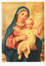 M. Eleonora Motylowska Zdj. z książki O. Cecyliana Niezgody OFMConv, Błogosławiona Klara Ludwika Szczęsna; Współzałożycielka Zgromadzenia Służebnic Najświętszego Serca Jezusowego 1863-1916, Kraków 2015. Celem tego Zgromadzenia miała być przede wszystkim „opieka nad służącymi i dziewczętami pozostającymi bez pracy"[7]. Zgromadzenie zostało założone rok wcześniej i było właściwie w fazie organizacji. W październiku 1886 roku Ludwika Szczęsna przyjechała do Warszawy. Tam, ona i jeszcze kilka dziewcząt zamieszkało w wynajętym mieszkaniu na ul. Wilczej nr 27. To pozwoliło s. Eleonorze Motylowskiej na zdecydowanie szybsze rozpoczęcie faktycznej działalności Zgromadzenia, gdyż właśnie w tym mieszkaniu „powstał pierwszy dom Sług Jezusa, a w nim pracownia sukien"[8]. Oczywiście pracownia była pewną zasłoną dla ukrycia właściwej działalności sióstr. Dwa miesiące później, dokładnie 8 grudnia, „w uroczystość Niepokalanego Poczęcia Najświętszej Maryi Panny Ludwika rozpoczęła nowicjat, przyjmując zakonne imię Honorata"[9]. To przyjęcie imienia zakonnego było tylko symboliczne, gdyż siostry tego zgromadzenia prowadziły w ukryciu swoje życie zakonne, a więc dla niewtajemniczonych pozostawała ona dalej panną Ludwiką. W ciągu tygodnia mieszkanie na ul. Wilczej służyło jako wspomniana już wcześniej pracownia sukien, gdzie Ludwika wykorzystywała swoje umiejętności krawieckie. Natomiast „w niedziele i święta odwiedzała znajome dziewczęta w miejscach ich pracy, prowadząc pogadanki religijne i lekcje katechizmu, poświęcając czas na wspólne czytania duchowne i rozmyślanie, a także na lekcje zawodu. Już wówczas wykonywała zadanie Sług Jezusa, jakim była opieka religijna, moralna i materialna nad służącymi i biednymi dziewczętami, by je przygotować do życia religijnego, uczciwej pracy i do założenia własnych chrześcijańskich rodzin"[10]. We wspomnieniach z tamtych czasów, zapamiętano nowicjuszkę Honoratę jako osobę cichą, pełną prostoty i pogody, miłującą wszystkich z którymi miała kontakt a zwłaszcza panny służące. Nowicjat zakończyła s. Honorata po dwóch latach, a rok po jego zakończeniu, w grudniu 1889 roku złożyła swoje pierwsze śluby zakonne, czyli tak zwane śluby roczne. Nie były to śluby kanoniczne, gdyż Zgromadzenie nie było jeszcze zatwierdzone przez Kościół. Ponieważ była to wspólnota tercjarska, jedynie zorganizowana na sposób zakonny, więc śluby te miały charakter prywatny. Ponawiała je co roku, przez cztery kolejne lata. Jeszcze w październiku 1889 roku skierowano s. Honoratę do Lublina, gdzie została przełożoną nowo otwartej w tym mieście placówki zgromadzenia. Oczywiście, oficjalnie była to pracownia krawiecka a panna Ludwika była jej kierowniczką. I tam także, podobnie jak w Warszawie, w czasie wolnym od legalnej działalności, prowadzono potajemnie pracę opiekuńczą. Siostry działały „w wielu środowiskach, zwłaszcza w tzw. zagrożonych, czyli wśród młodzieży i dzieci, wśród służących, osób przybywających do większych miast w poszukiwaniu pracy oraz wśród tych, którzy pracę utracili. (...) Dopełnieniem różnorakiej działalności służącej rozwojowi religijnemu i duchowemu oraz dziełom miłosierdzia było organizowanie nowych miejsc pracy, pracowni i warsztatów, w których najubożsi nie tylko pracowali, ale uczyli się nowych zawodów i podnosili swoje zawodowe kwalifikacje. W pracowni krawieckiej, ucząc dziewczęta kroju i szycia oraz dając im możliwości pracy zarobkowej, a równocześnie czuwając nad ich rozwojem duchowym i codziennym życiem, pracowała w Lublinie siostra Honorata do maja 1893 r. Pracowała także w kuchni dla ubogich"[11]. Niestety, jedna ze służących, którymi opiekowała się s. Honorata i która uczestniczyła w tych nielegalnych spotkaniach, opowiedziała swojej rodzonej siostrze o tym jak do tej pracowni przychodzą, czytają i rozmawiają. Z kolei ta siostra miała męża lokaja służącego u gubernatora i ona również opowiedziała to swojemu „mężowi - lokajowi, a ten gubernatorowi. Gubernator zarządził rewizję w domu Szczęsnej. Ludwika drżała z lęku, zwłaszcza w chwili, gdy żandarmi przeszukiwali szufladę, w której leżał zeszyt Ustaw Zgromadzenia Sług Jezusa. Ale zeszyt zaczepił się na górnej listewce szuflady i nie został przez nich dostrzeżony. Znaleźli tylko katechizm, który był wówczas drukiem dozwolonym. Uznano, że jest to jakieś pobożne zebranie osób, które nie ma charakteru politycznego, jednak zakazano prowadzenia pracowni, a prowadzącą ją Szczęsną wydalono poza granice guberni lubelskiej"[12]. Ludwika otrzymała trzy dni na wyjazd z Lublina do miejsca swojego zameldowania, czyli do Mławy. Ale zanim wyjechała, zdążyła jeszcze odwiedzić swojego ojca duchownego ks. Antoniego Nojszewskiego (1844-1921). Ten ksiądz podarował jej wówczas obrazek Matki Boskiej z Dzieciątkiem Jezus, które miało na piersiach wymalowane serce. Wręczając ten obrazek powiedział: „Idź, a gdzie będziesz, rozszerzaj nabożeństwo do Serca Jezusowego"[13].  Matka Boża z Dzieciątkiem, dar ks. A. Nojszewskiego. Zdj. z książki O. Cecyliana Niezgody OFMConv, Błogosławiona Klara Ludwika Szczęsna; Współzałożycielka Zgromadzenia Służebnic Najświętszego Serca Jezusowego 1863-1916, Kraków 2015. Ludwika przyjechała najpierw do Warszawy i tam udała się do domu Zgromadzenia Sług Jezusa. Tak wspominała ten przyjazd s. Alojza Rostkowska: „przełożeni nasi byli zakłopotani i przerażeni (...), obawiali się, że może pani Ludwika jest śledzona przez władze, dlatego nie mogła nawet nocować w domu zgromadzenia. W razie wykrycia, że pani Ludwika należy do zgromadzenia - od czego na razie ochronił ją wypadek z konstytucjami - wszystkie zgromadzenia a było ich kilkanaście w Warszawie, mogłyby ucierpieć. Drżan