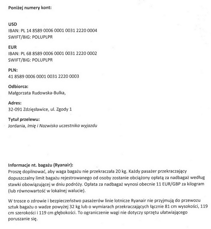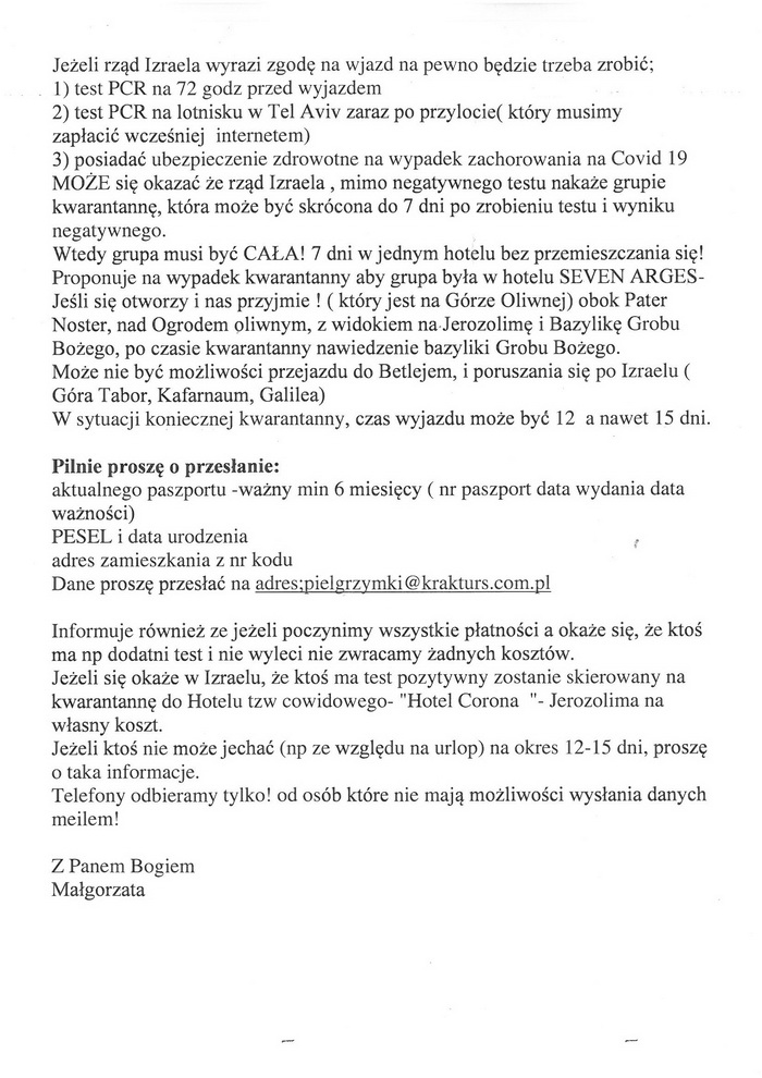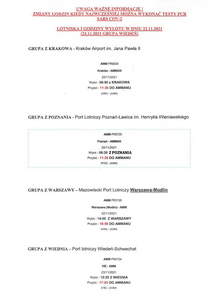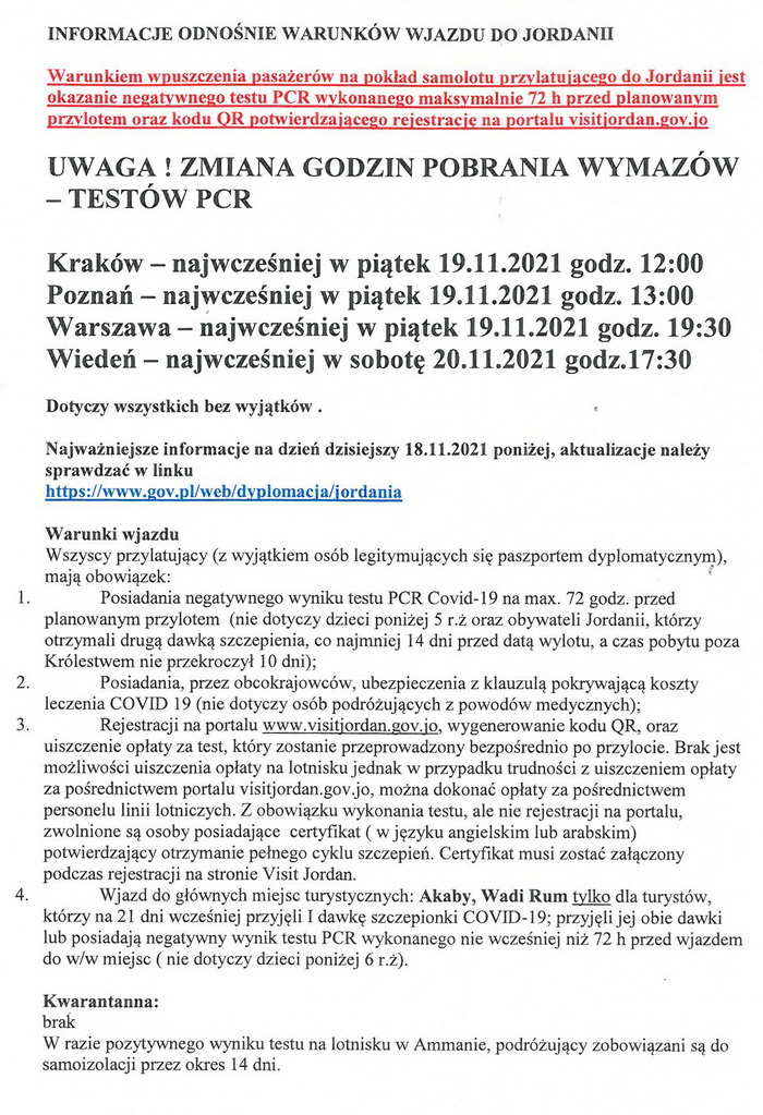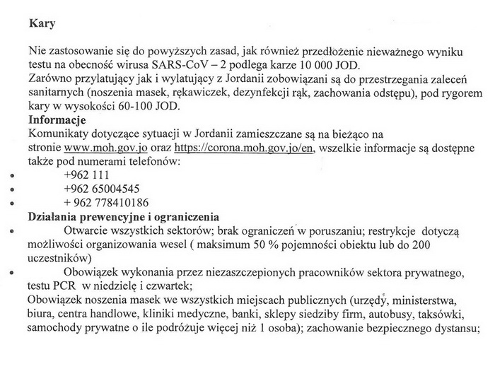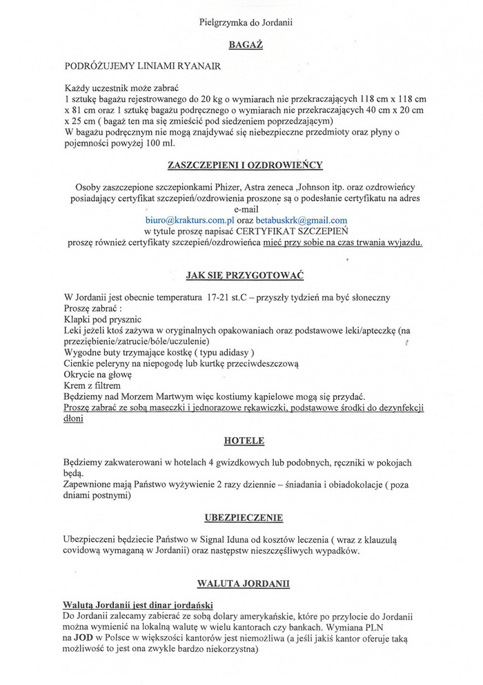 INFORMACJA DLA PIELGRZYMÓW WYJEŻDŻAJĄCYCH DO JORDANII 2021